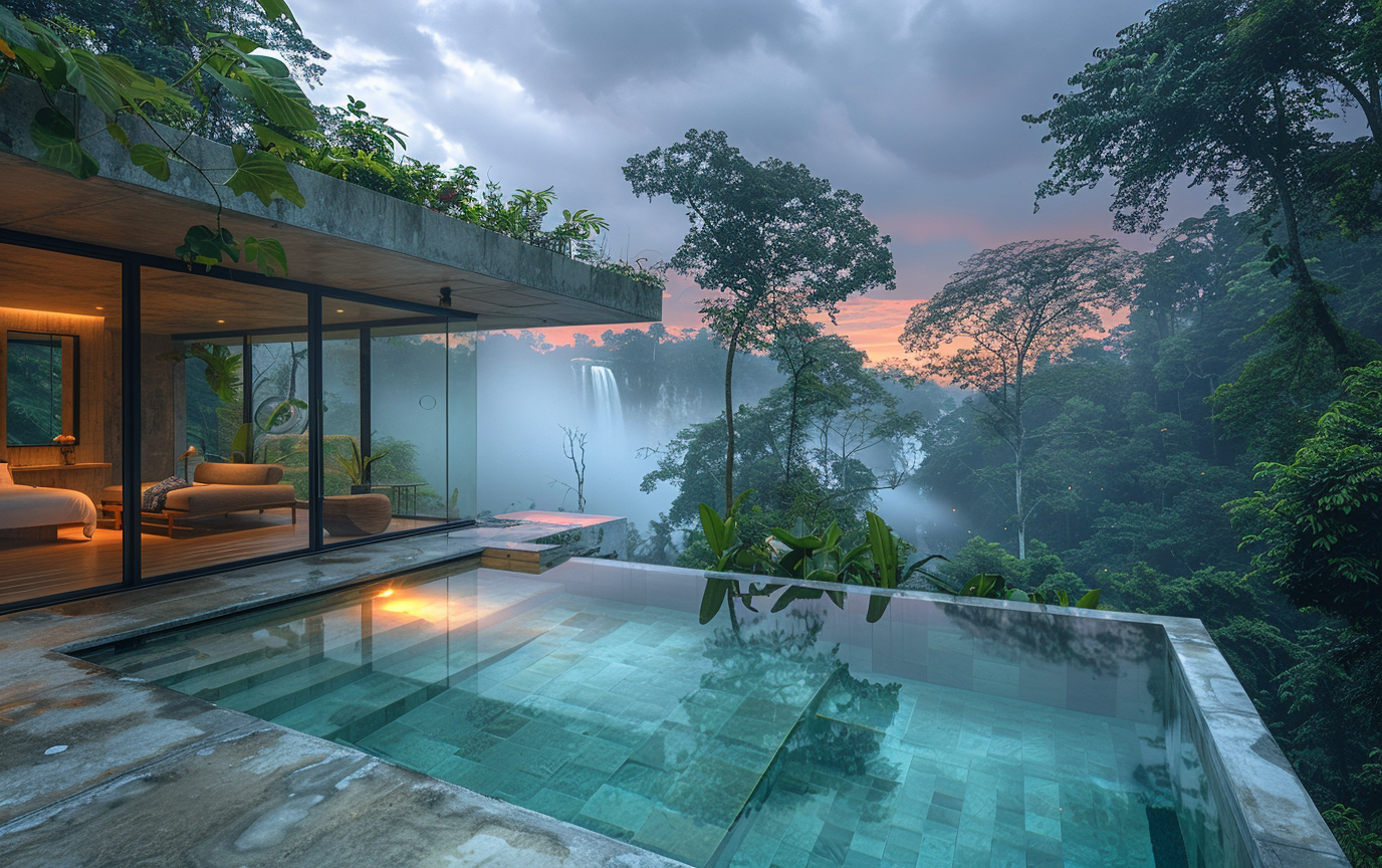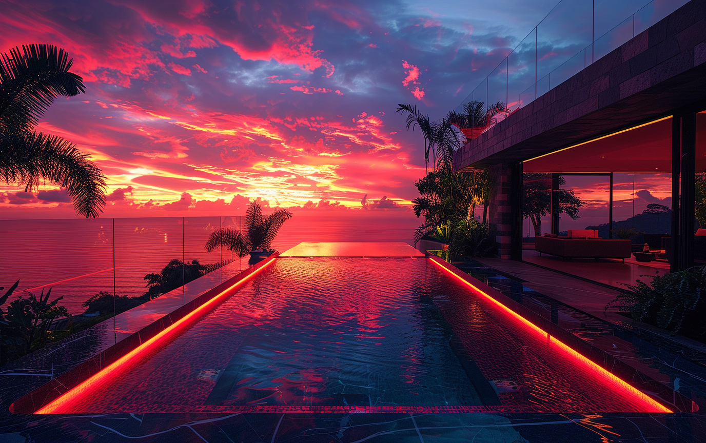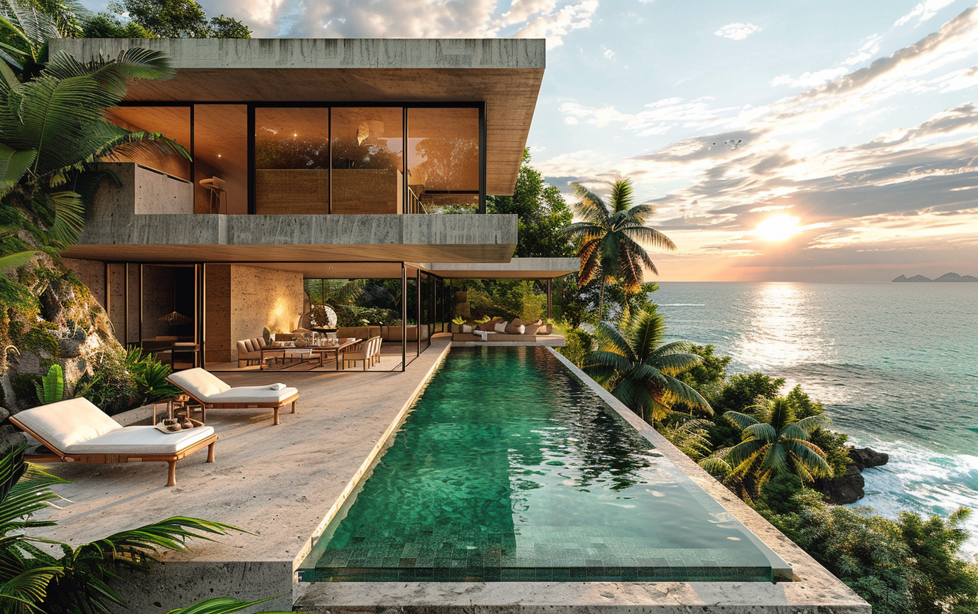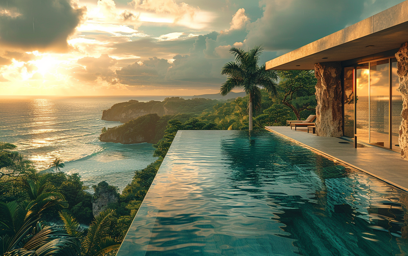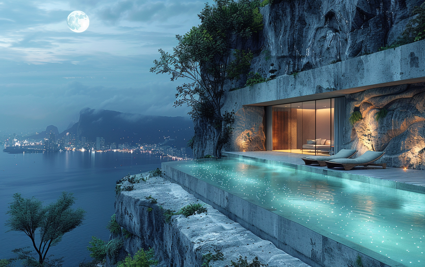 Rooftop brutalista com piscina infinity em clima cinematográfico — texturas de concreto cru, palmeiras, e vista para mar/jungle. Inclui 9 variações práticas (tipo de piscina, horário/iluminação e entorno/vegetação) para criar desde cenas ao pôr-do-sol até noites à luz da lua ou paisagens vulcânicas. Perfeito para designers, artistas 3D e criadores que buscam imagens arquitetônicas realistas e atmosféricas. Use direto no prompt e ajuste parâmetros de aspect ratio, versão e stylize conforme necessário. Veja o prompt base e variações no arquivo carregado.